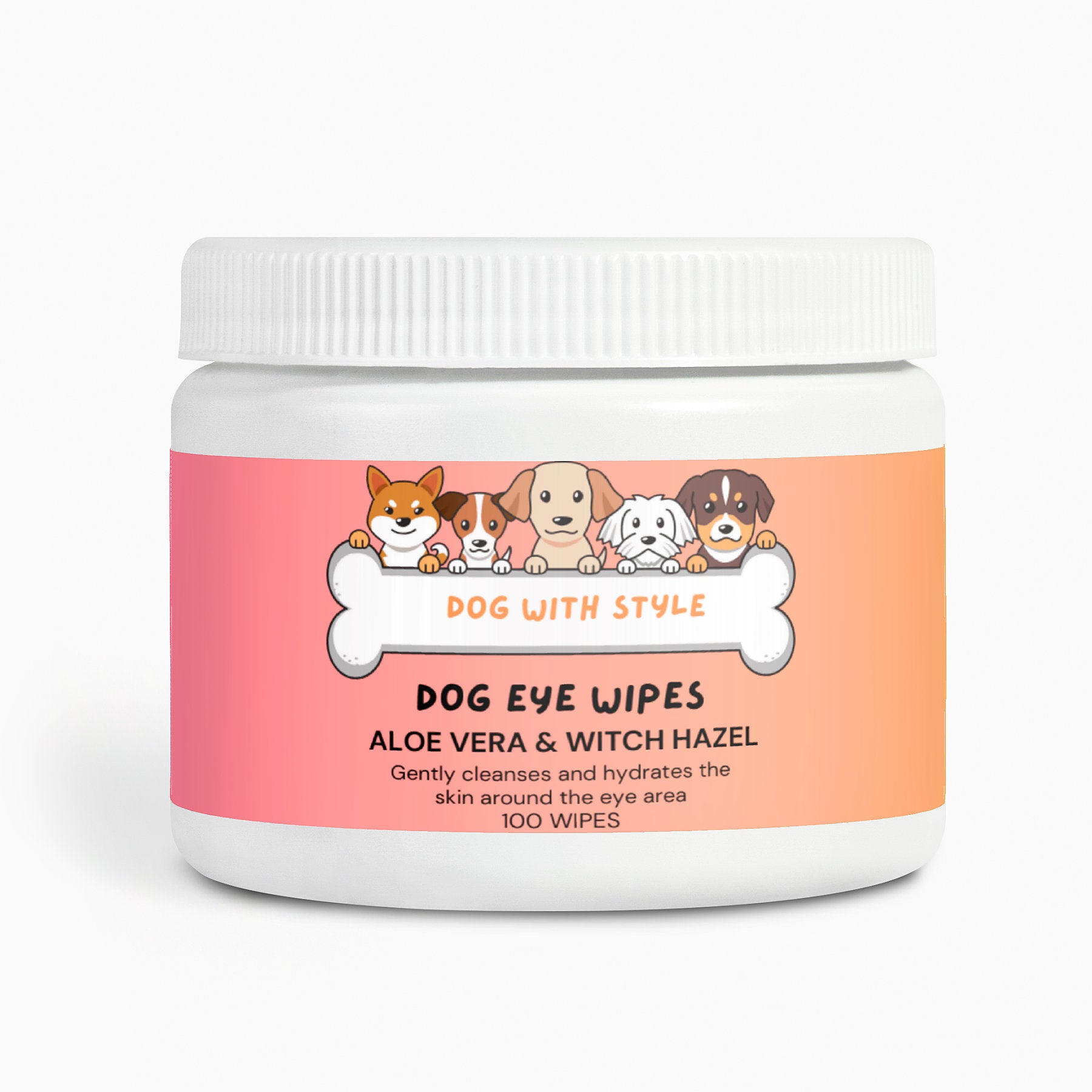 Our dog eye wipes make it easy to clean around your dog's eyes to remove tear stains and debris. These wipes come pre-moistened, ready to use. They contain 100% Natural Ingredients, including moisturizing agents such as Aloe Vera, and calming actives, such as Witch Hazel. While gently cleaning the area, the product will also control dryness and help eye area feel smoother.